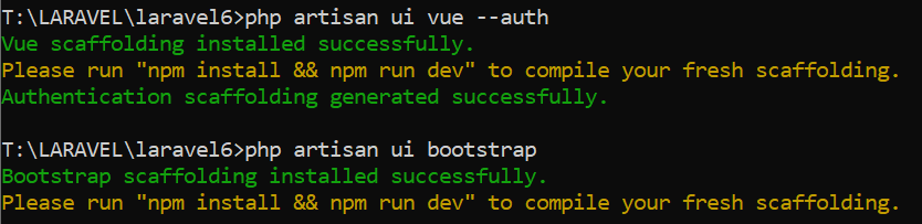 Untuk install vue js/bootstrap, gunakan perintah berikut